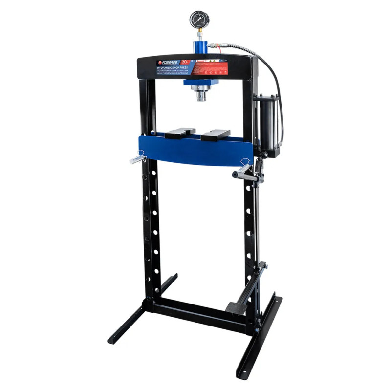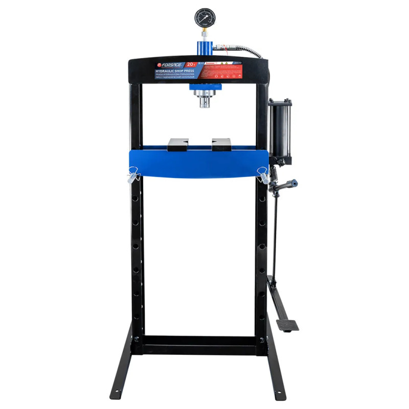 Пресс гидравлический напольный Forsage — это профессиональное оборудование грузоподъемностью 20 тонн, предназначенное для выполнения тяжелых слесарных и ремонтных работ, включая запрессовку и выпрессовку подшипников, шкивов, сайлент-блоков, а также правку металлоконструкций.
