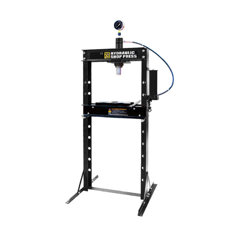 Пресс также оснащён манометром, служащим для контролирования давления. Максимальная нагрузка 20т Рабочая высота 0-910мм Рабочая ширина 490мм Рабочий стол 200х490мм Ход штока 185мм Вес 92кг.