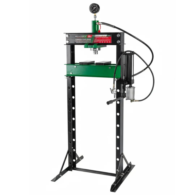 Пресс гидравлический напольный ROCKFORCE — это профессиональное оборудование, предназначенное для выполнения тяжелых слесарных и ремонтных работ, включая запрессовку и выпрессовку подшипников, шкивов, сайлент-блоков, а также правку металлоконструкций.