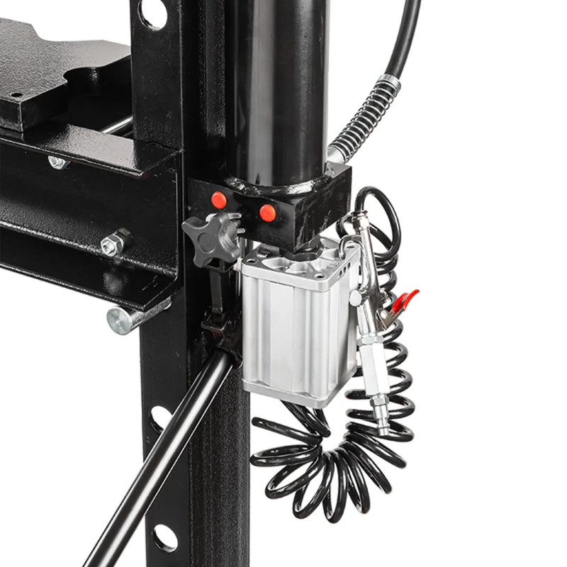 Конструкция пресса обладает усиленной стальной рамой, обеспечивающей максимальную устойчивость и безопасность при работе с нагрузками.