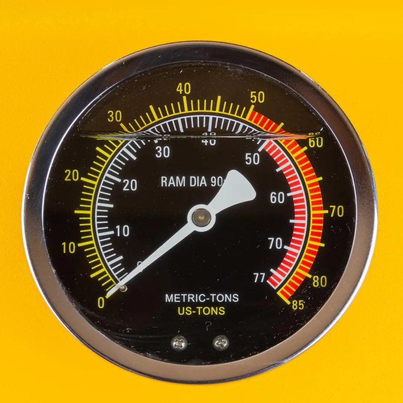 Пресс также оснащён манометром, служащим для контролирования давления. Максимальная нагрузка 40т Рабочая высота 0-890мм Рабочая ширина 650мм Ход штока 175мм Вес 286кг.