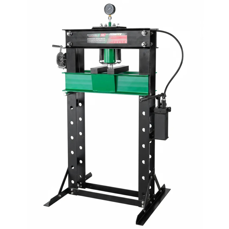 Гидравлический напольный пресс — это мощное и надежное профессиональное оборудование грузоподъемностью 50 тонн, предназначенное для выполнения различных слесарных и ремонтных работ.