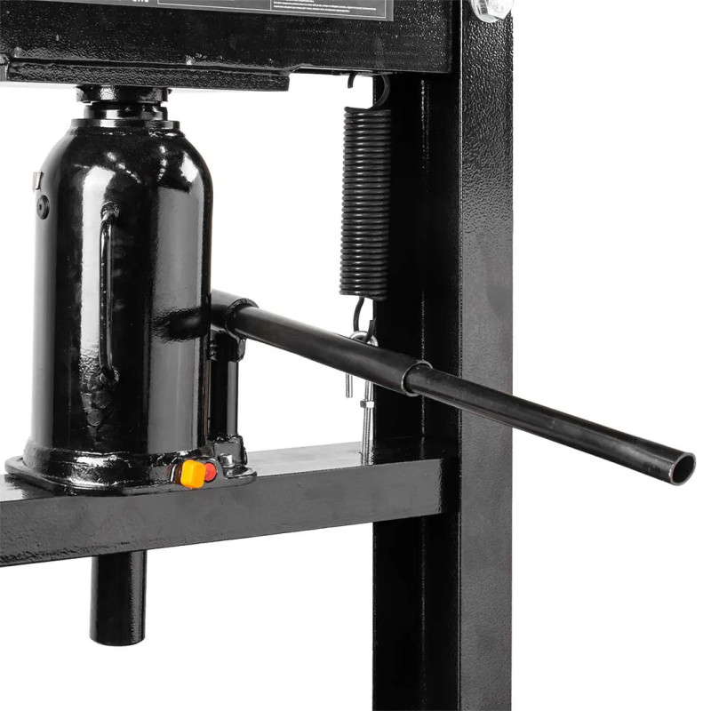 Этот пресс идеально подходит для использования в автомастерских, промышленных предприятиях и других местах, где требуется мощное оборудование для работы с тяжелыми деталями и материалами. Напольный гидравлический пресс под бутылочный домкрат приводится в действие при помощи рукояти.