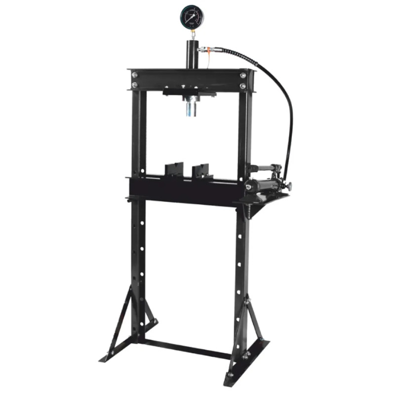 Пресс также оснащён манометром, служащим для контролирования давления. Максимальная нагрузка 12т Рабочая высота 0-900мм Рабочая ширина 475мм Рабочий стол 180х475мм Ход штока 175мм Вес 73кг. Поставляется в 2-х коробках