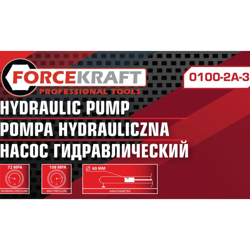 В комплект входит только сам насос и шланг 1,3 м. Максимальная нагрузка 20т Объём масла 600 мл. Длина насоса 600мм Рабочее давление 72 бар Максимальное давление 108бар