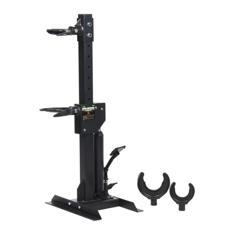 Съемник пружин гидравлический — это стационарное устройство напольного типа для быстрого и безопасного сжатия пружин опорных стоек автомобилей. Гидроцилиндр имеет встроенный возвратный механизм после сброса давления. Предназначен для сжатия пружин ,ножной привод гидроцилиндра удобен при работе с пружиной и имеет простую и прочную конструкцию .Надежный и безопасный механизм зажима. Широкий диапазон хода для разных пружин.