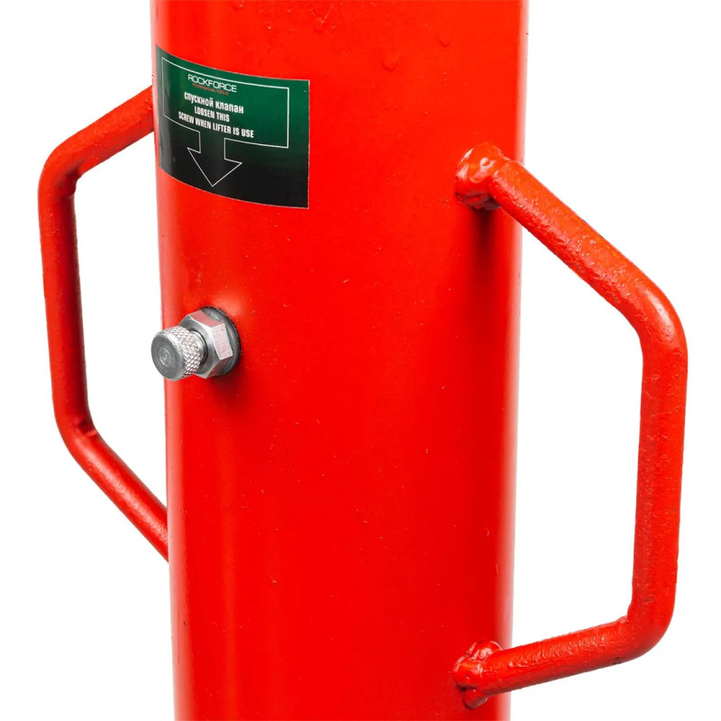 Подъем осуществляется при помощи ножного насоса, опускание путем откручивания клапана вручную.