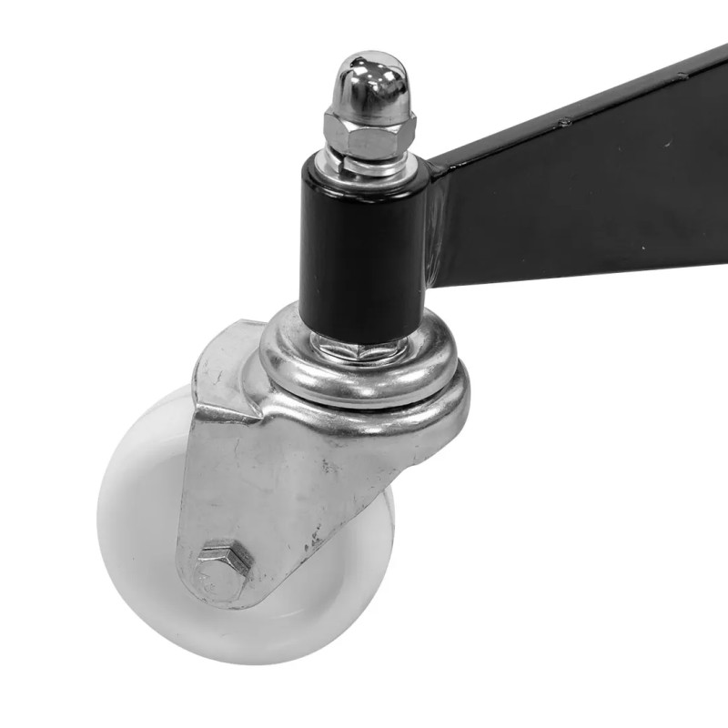 Благодаря компактной конструкции и четырем колесам с плавным ходом (четыре колеса, поворотные ролики с шарикоподшипниками) трансмиссионную стойку можно легко закатить под автомобиль и поднять на нужную высоту с помощью удобной педали.