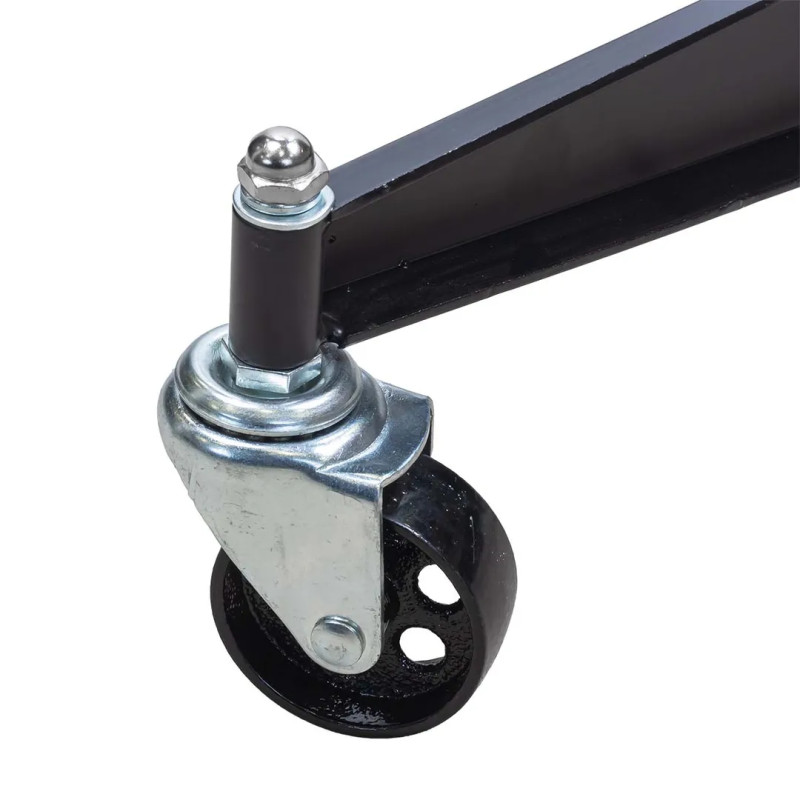 Благодаря компактной конструкции и четырем колесам с плавным ходом (четыре колеса, поворотные ролики с шарикоподшипниками) трансмиссионную стойку можно легко закатить под автомобиль и поднять на нужную высоту с помощью удобной педали. Грузоподъемность: