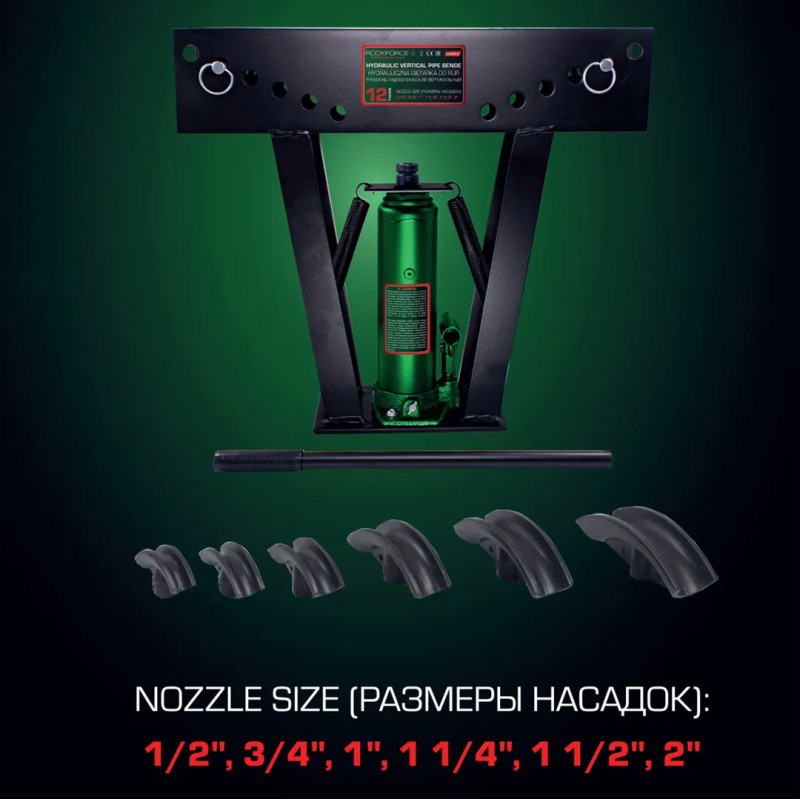 Трубогиб поставляется с набором гибочных сегментов из чугуна (башмаков) с параметрами 1/2&apos ;