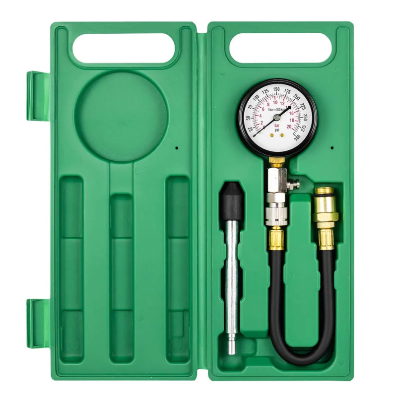Набор с индикатором компрессии бензинового двигателя из 3 предметов, в кейсе - это прибор, который позволяет измерить давление в цилиндрах двигателя автомобиля.