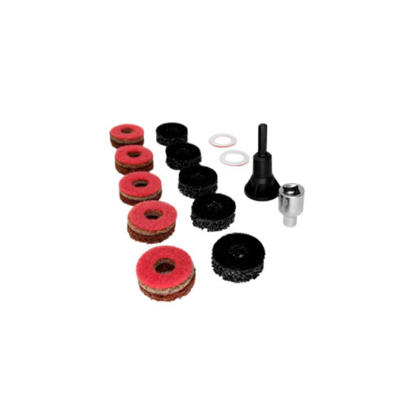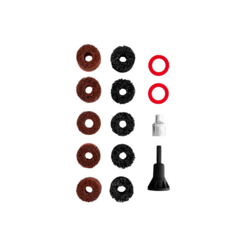 Предназначен для очистки грязи, ржавчины и других загрязнений колесных шпилек и болтов. Конструкция крепления на липучке для быстрой замены зачистных дисков.