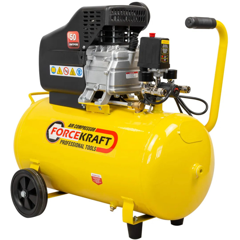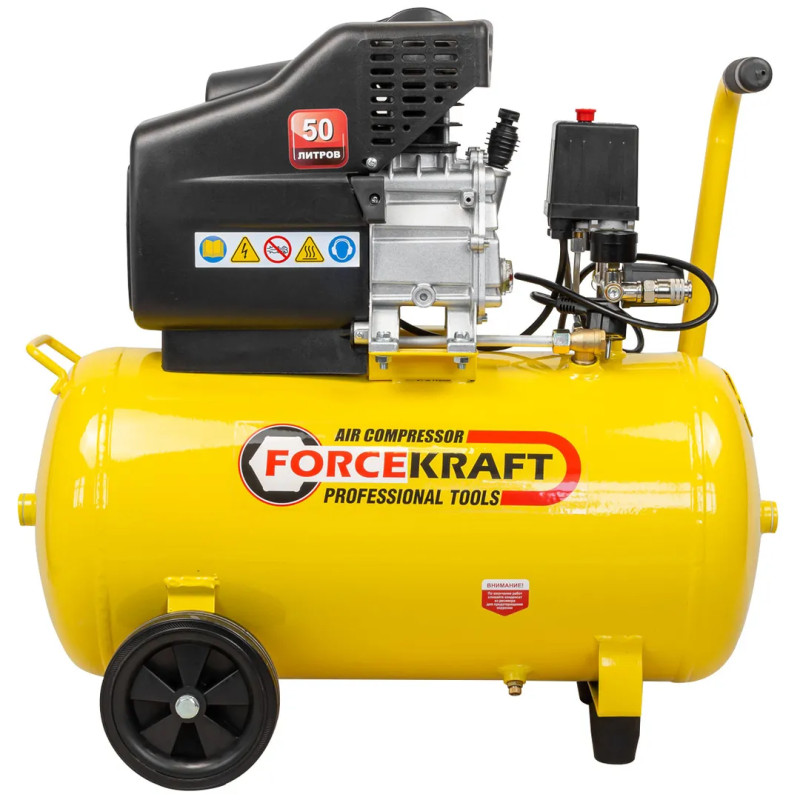 Надежную работу обеспечивают масляный тип смазки, прямой привод, механический предохранитель клапана высокого давления и выключатель давления.
