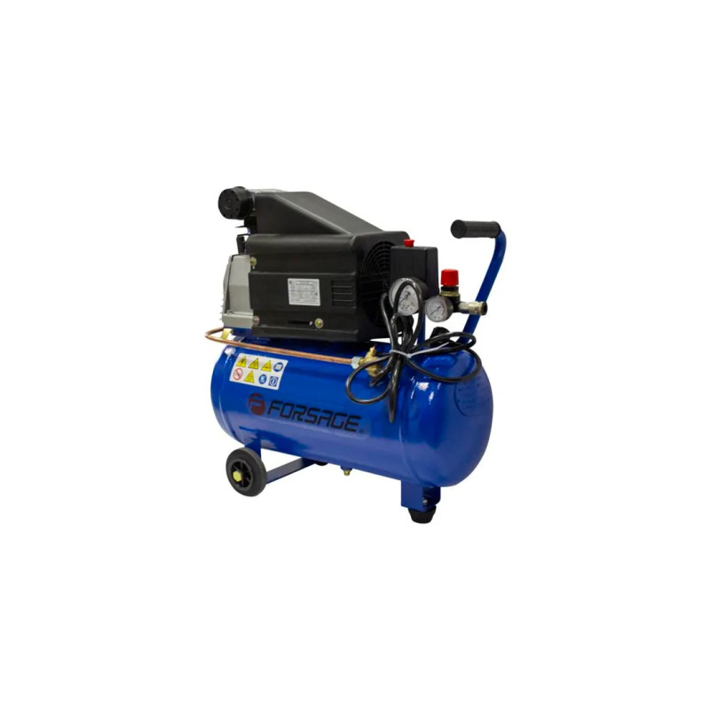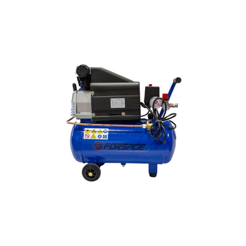 Домашний компрессор оснащен одноцилиндровым двигателем, а также двумя манометрами для регулировки давления.