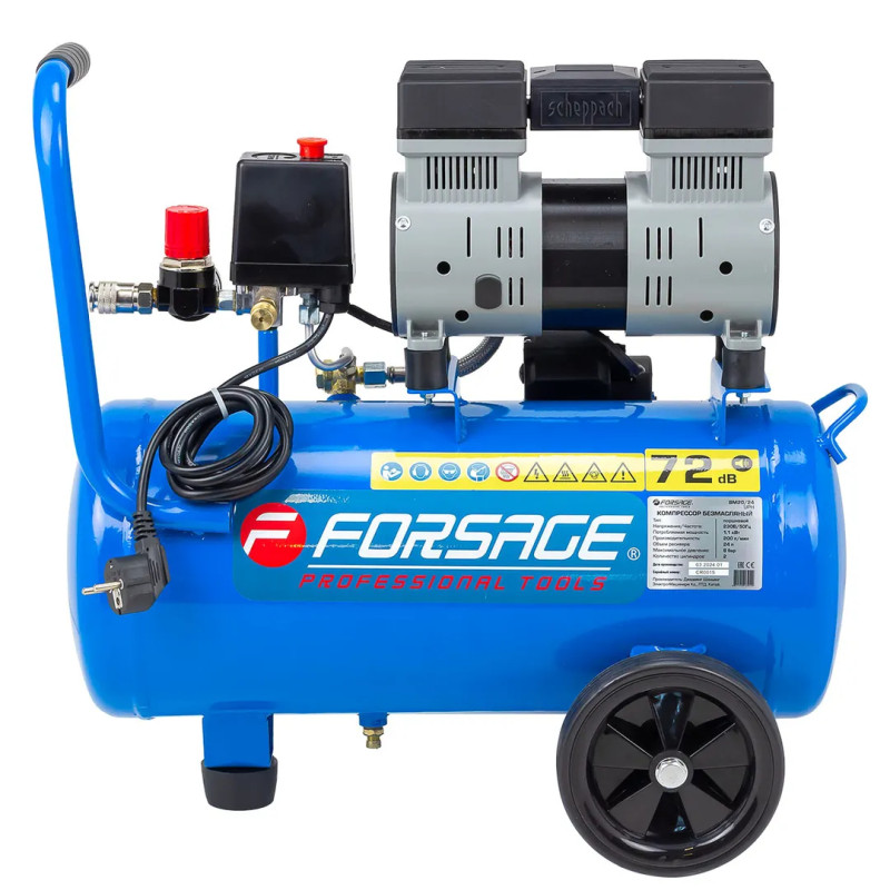 Компрессор работает в безмасляном режиме, что позволяет применять аппарат без специального оборудования для очистки воздуха от масла.