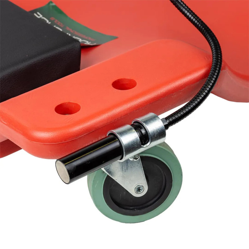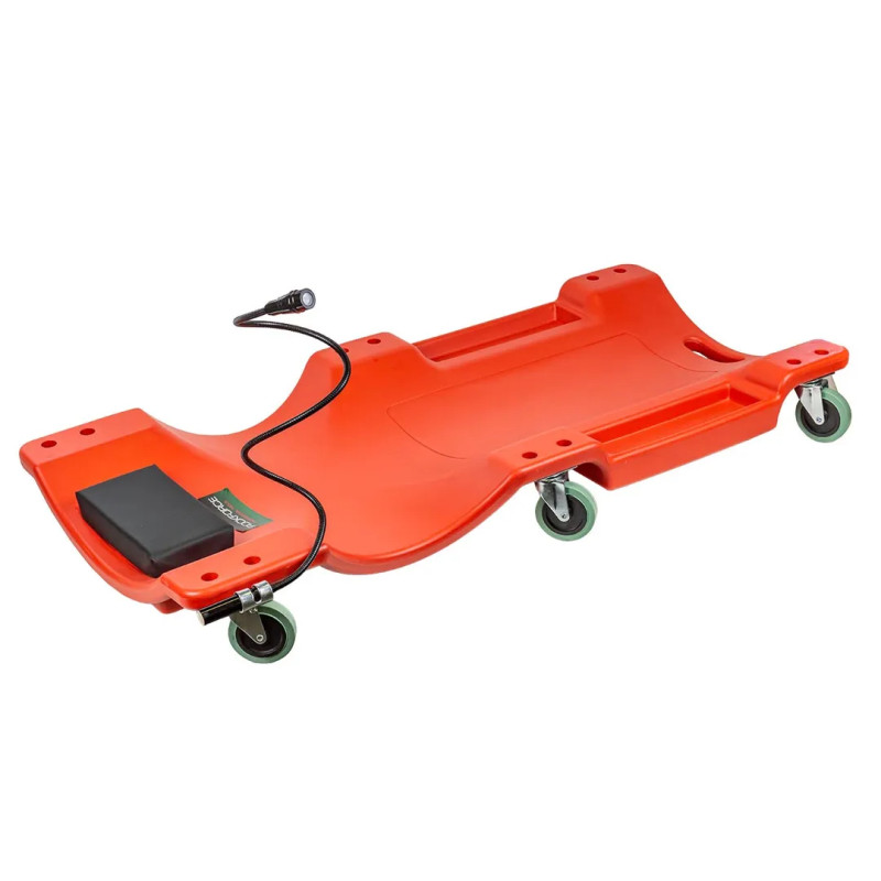 Лежак пластиковый подкатной на 6-ти колесах с фонарем на гибком удлинителе.