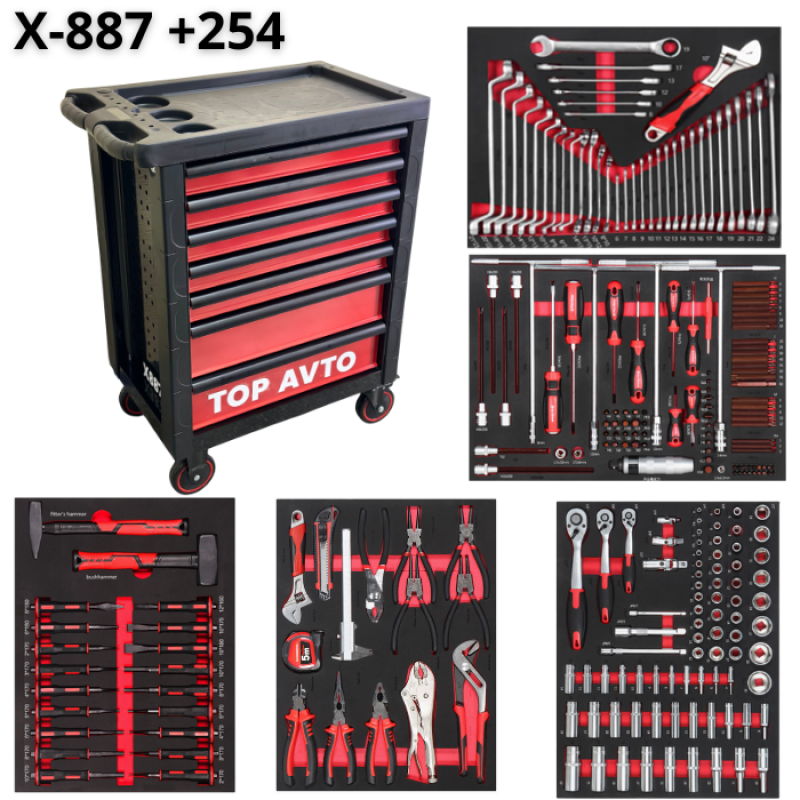 Предлагаем профессиональную инструментальную тележку с набором из 249 предметов — надежное решение для гаража, СТО, автосервиса и домашней мастерской. Этот комплект содержит все необходимые инструменты для ремонта автомобилей и технического обслуживания, что делает его незаменимым для профессионалов и автолюбителей.
