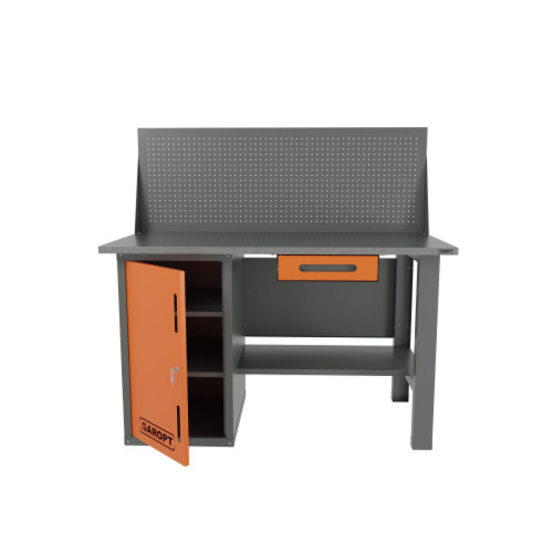 Верстак однотумбовый с ящиком и экраном 1400x700 мм GAROPT — серия "Low Cost" оранжевый