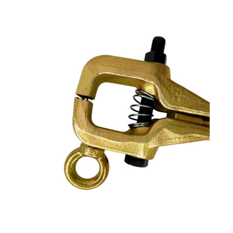 Держатель позволяет обеспечить тягу кузовных элементов в двух направлениях. Болтовой коробчатый зажим приспособления гарантирует надежное удержание и распределение усилия, что позволяет применять тяговую силу до 2000 кг под углом и до 3000 кг по прямой. Это обеспечивает возможность качественного рихтовки даже при сложных деформациях кузова.