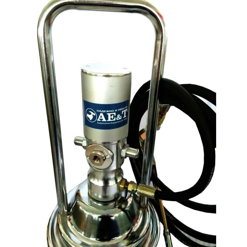 Конструкция состоит из бака для смазки объемом 12 л, насосного агрегата с пневмоприводом, шланга высокого давления, быстросъемного соединителя и раздаточного пистолета. Для удобства перемещения устройство оснащено колесами.