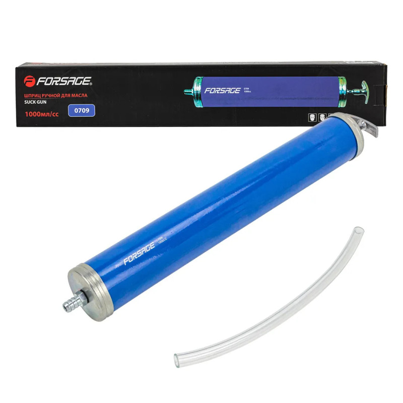 Для удобства хранения и транспортировки упакован в картонную коробку.Длина шприца -400мм.Длина шланга-300мм.