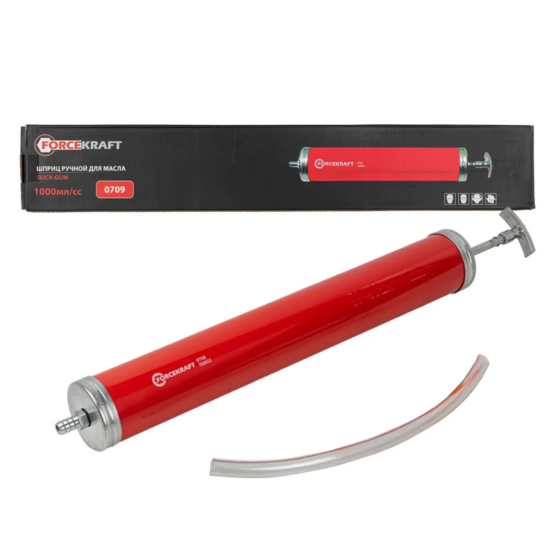 Для удобства хранения и транспортировки упакован в картонную коробку.Длина шприца -400мм.Длина шланга-300мм.