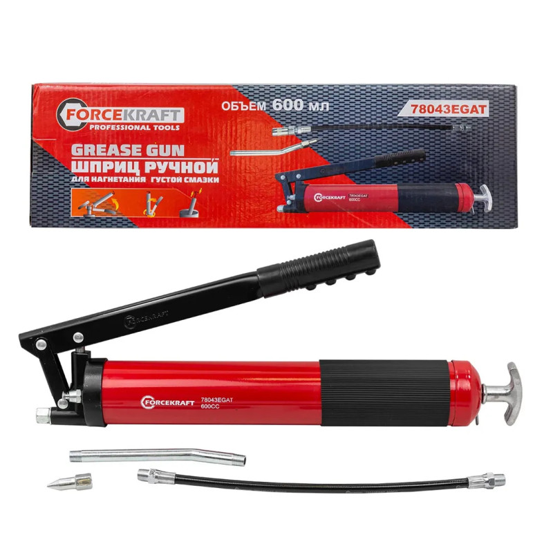 Шприц для нагнетания густой смазки ручной 600мл в комплекте с жестким и гибким наконечниками FK-78043EGAT