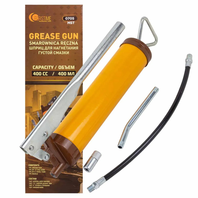 Шприц ручной для нагнетания густой смазки объемом 400 мл является удобным и компактным инструментом для нанесения смазки на различные поверхности.