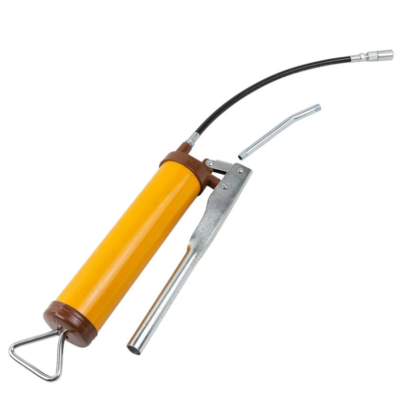 Шприц ручной для нагнетания густой смазки обладает прочной конструкцией и может использоваться в различных условиях эксплуатации.