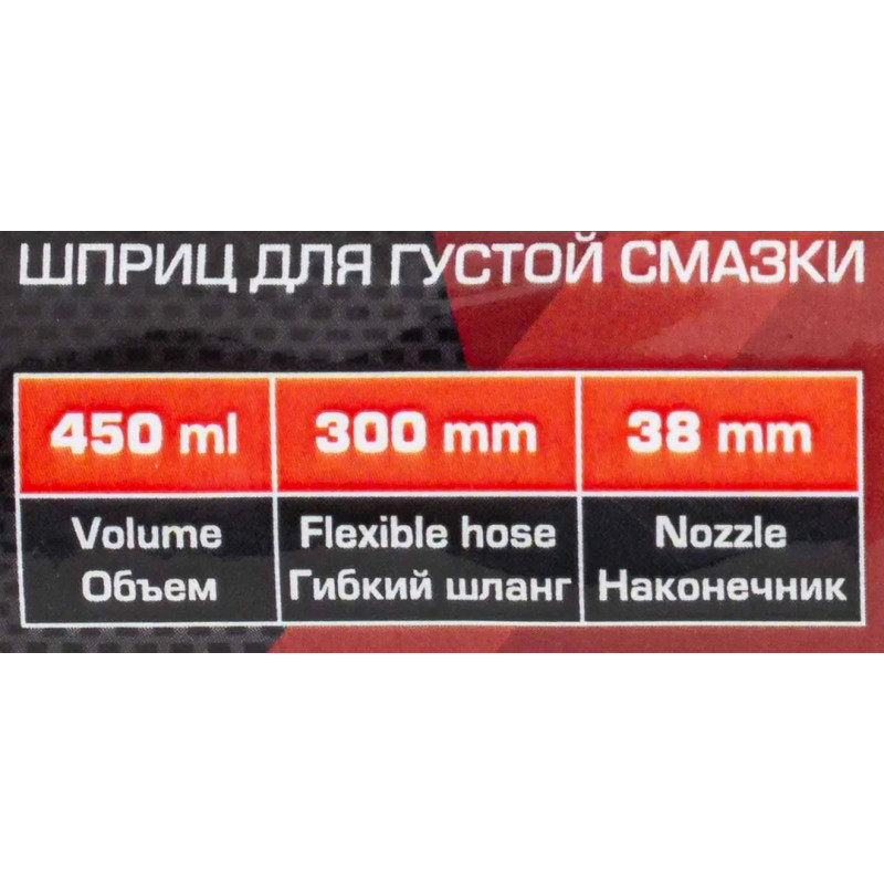 Поставляется в комплекте с гибким шлангом. Объем шприца 450мл Длина шланга 300мм Длина наконечника 38мм.