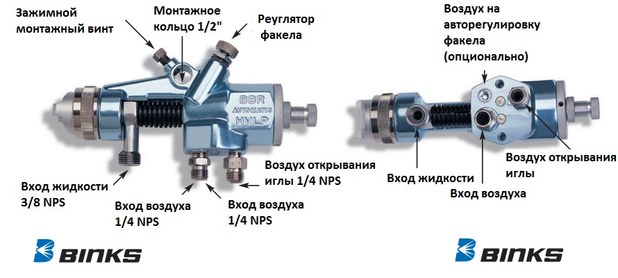 - Конструктивно взаимозаменяем с распылителем BINKS Model 95A