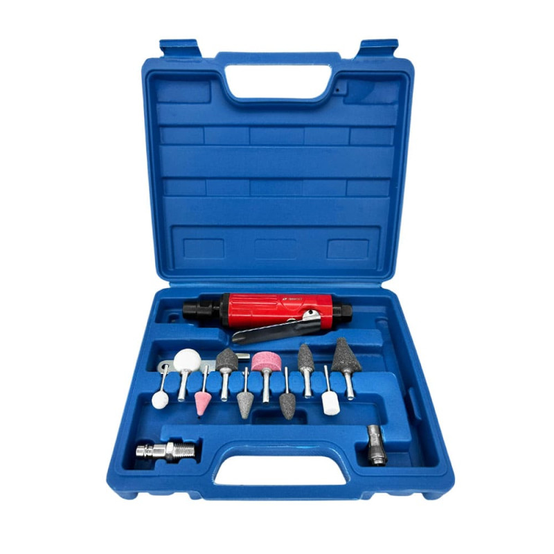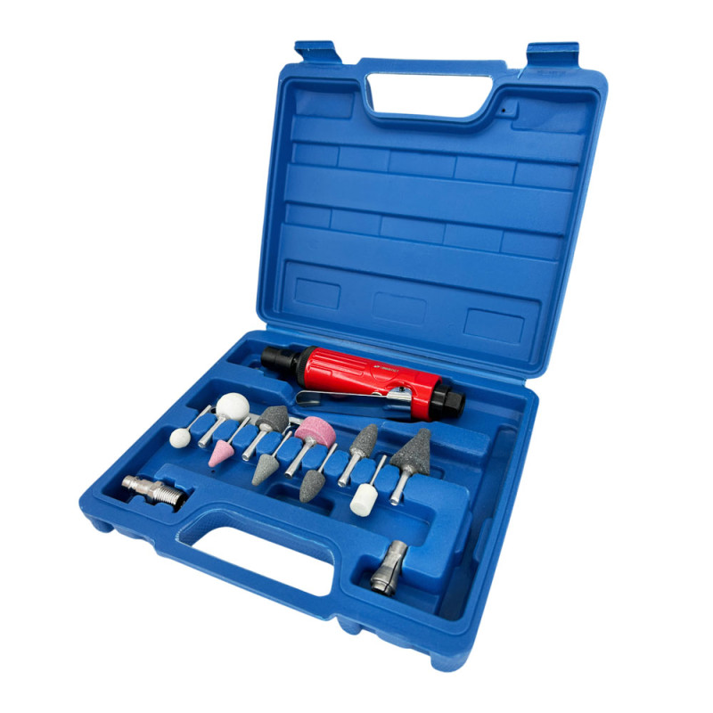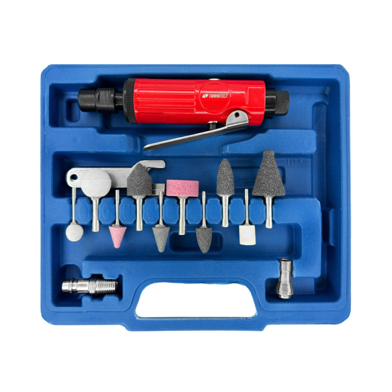 Высокая скорость вращения 25000 об/мин обеспечивает эффективное шлифование, полировку и зачистку поверхностей, а универсальные цанги (1/4" и 1/8") позволяют использовать широкий спектр насадок.