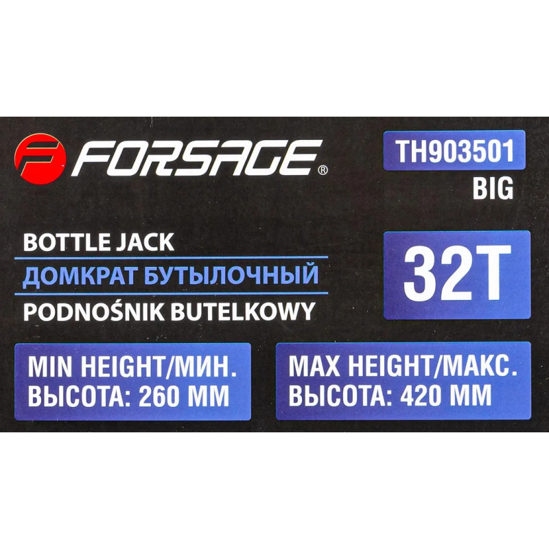 Этот домкрат обеспечивает безопасное поднятие, что делает его отличным выбором как для автомастерских, так и для личного использования. Грузоподьемность 32т, Высота подхвата 260мм, Ход штока 180мм, Максимальный уровень подъёма 420мм.
