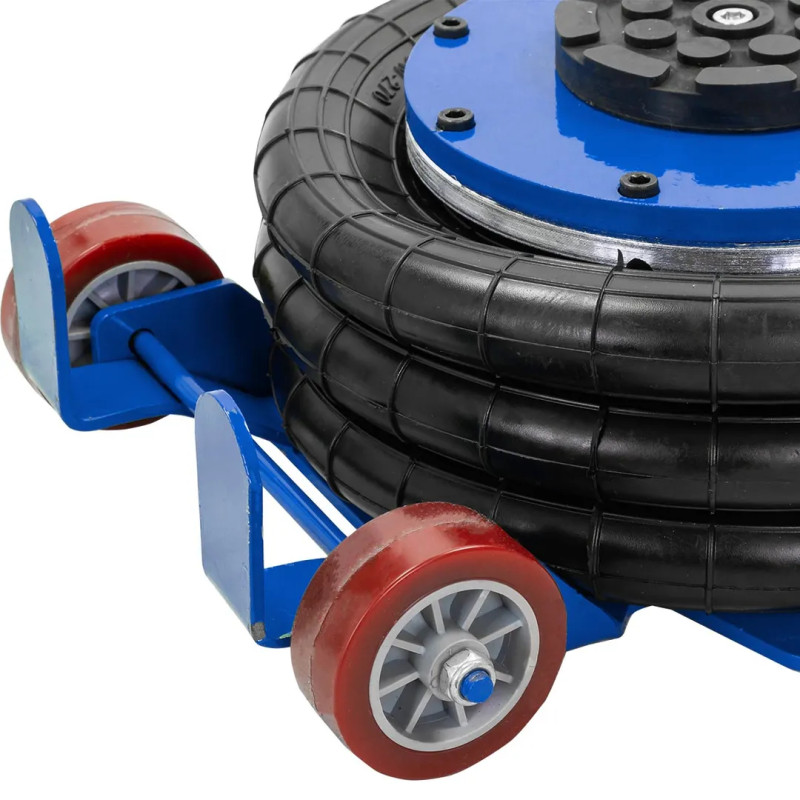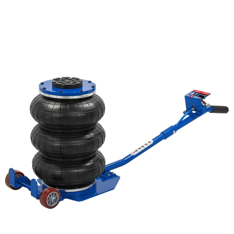 Профессиональный 3-камерный пневматический домкрат позволяет производить быстрый демонтаж и установку колес легковых автомобилей, а также необходимый местный ремонт подвески, узлов рулевого управления и тормозной системы.