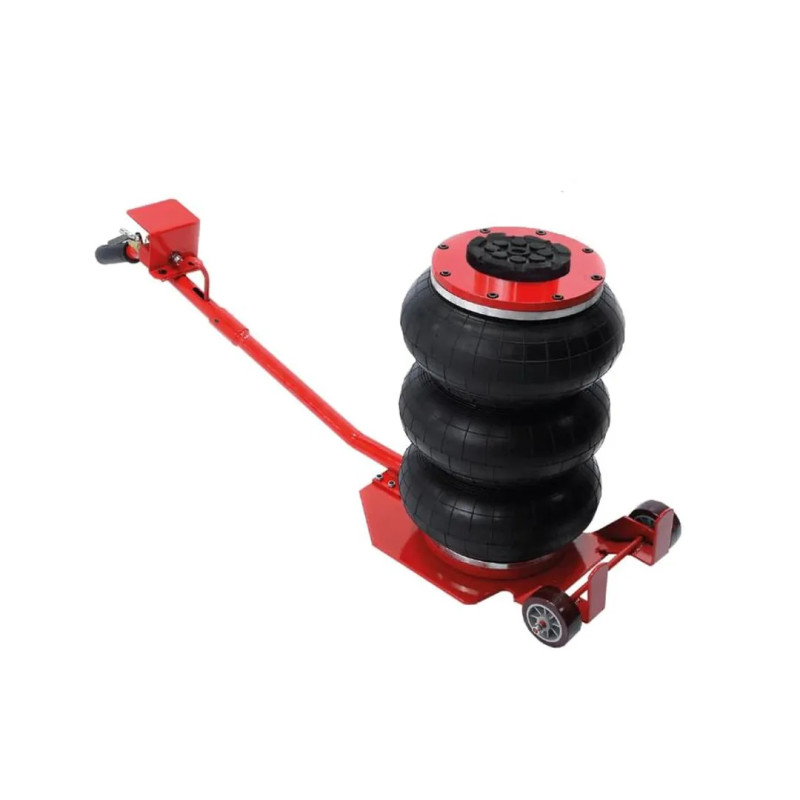 Профессиональный 3-камерный пневматический домкрат позволяет производить быстрый демонтаж и установку колес легковых автомобилей, а также необходимый местный ремонт подвески, узлов рулевого управления и тормозной системы.