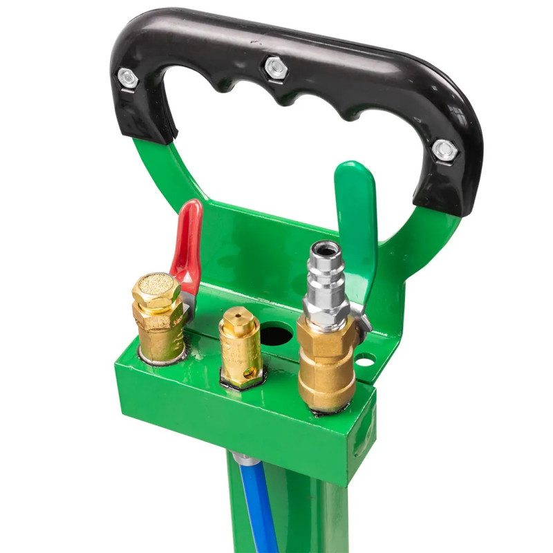 Устройство приводится в действие путем открытия крана подачи, расположенного на конце управляющей рукоятки.
