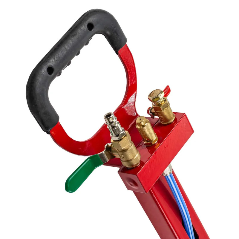 Устройство приводится в действие путем открытия крана подачи, расположенного на конце управляющей рукоятки.