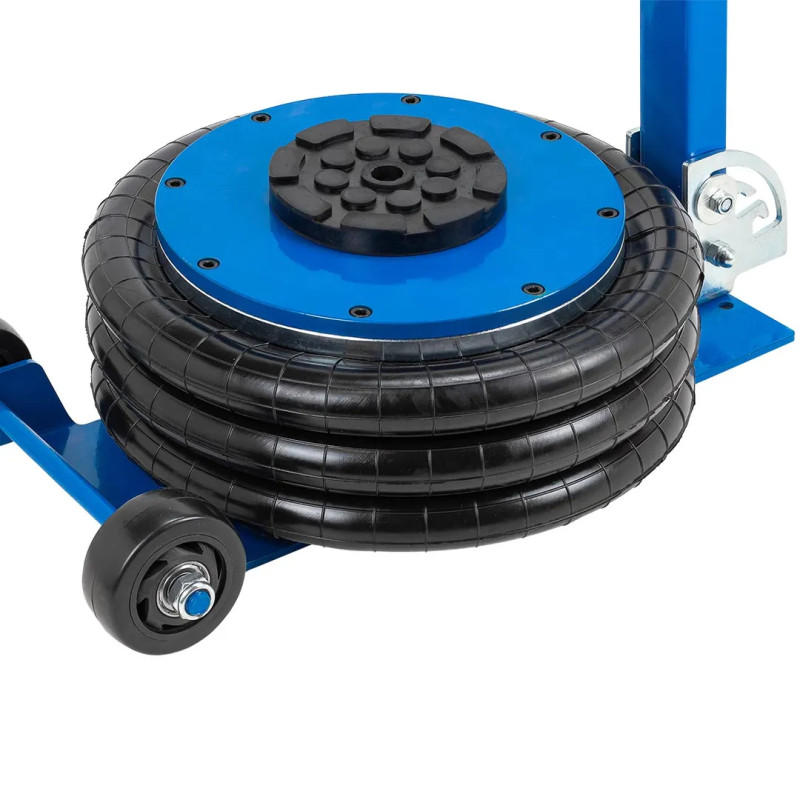 Профессиональный 3-камерный пневматический домкрат позволяет производить быстрый демонтаж и установку колес легковых автомобилей, а также необходимый местный ремонт подвески, узлов рулевого управления и тормозной системы.