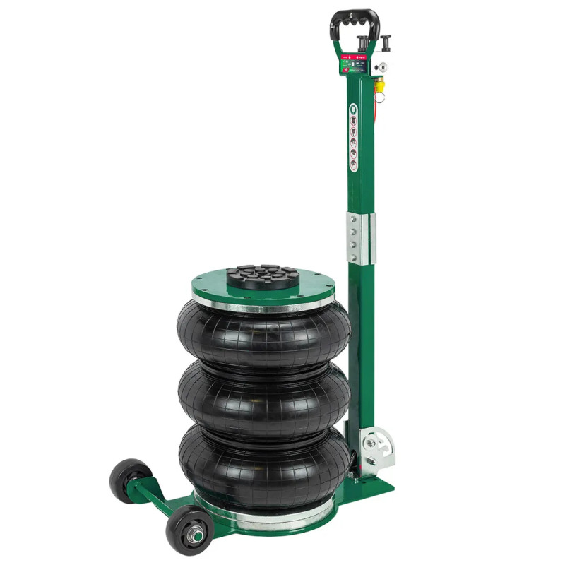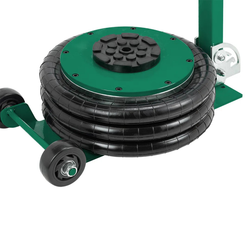Профессиональный 3-камерный пневматический домкрат позволяет производить быстрый демонтаж и установку колес легковых автомобилей, а также необходимый местный ремонт подвески, узлов рулевого управления и тормозной системы.
