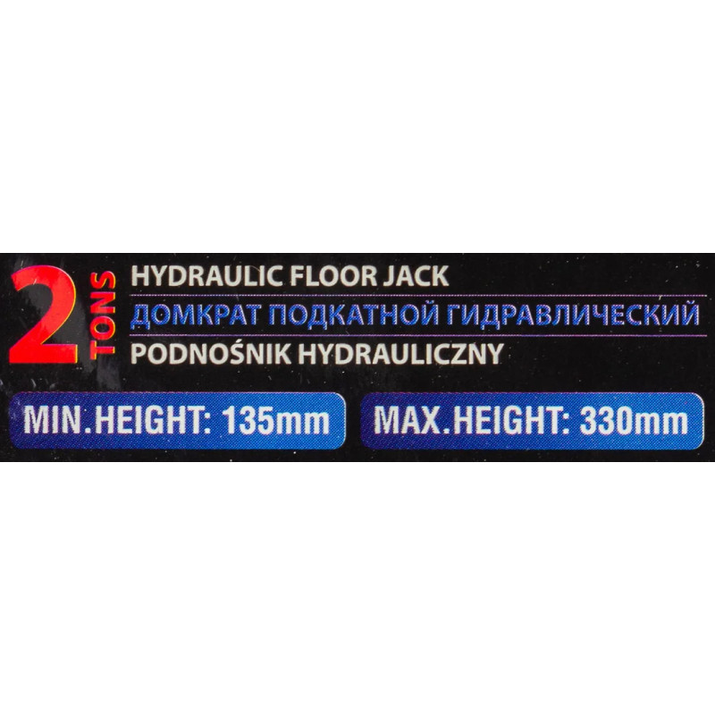 Высота подхвата 135 мм, высота подъёма 330 мм, грузоподъёмность 2 тонны.