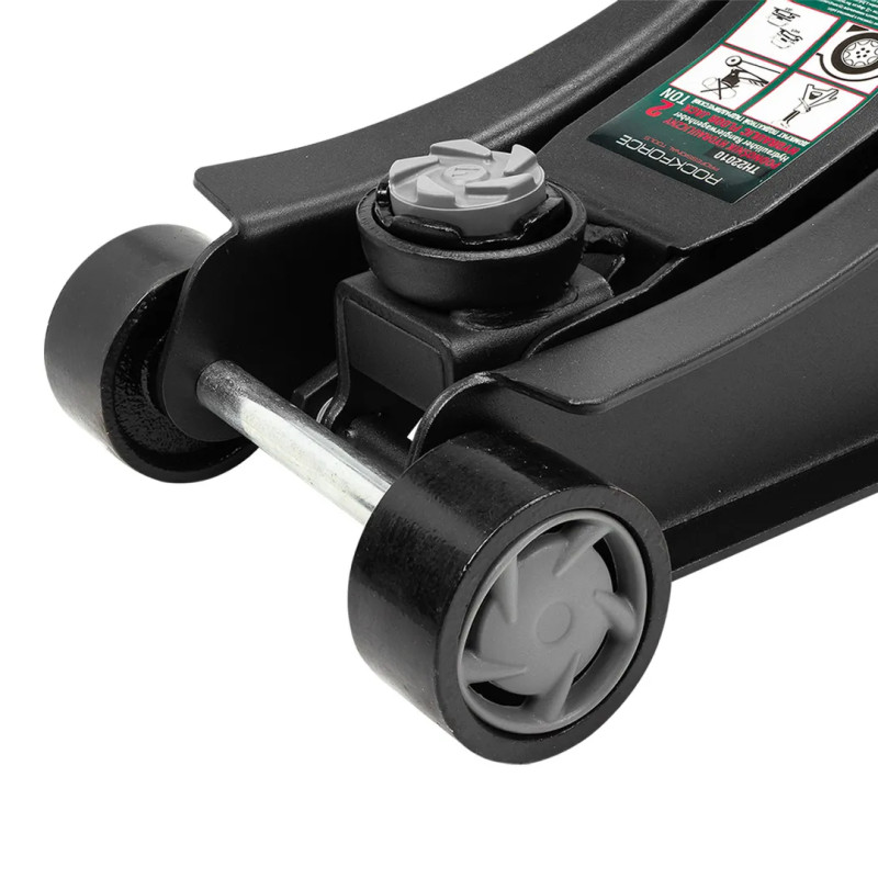 Домкрат оснащен 2 фиксированными и 2 поворотными колесами, поэтому его можно легко перемещать.