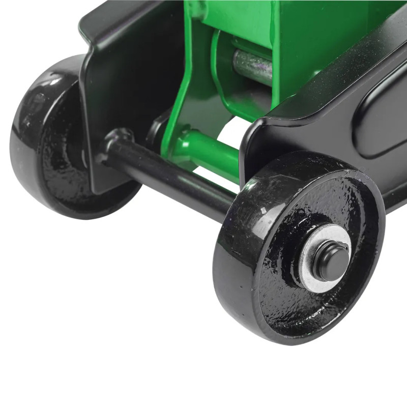 Домкрат оснащен 2 фиксированными и 2 поворотными колесами, поэтому его можно легко перемещать.