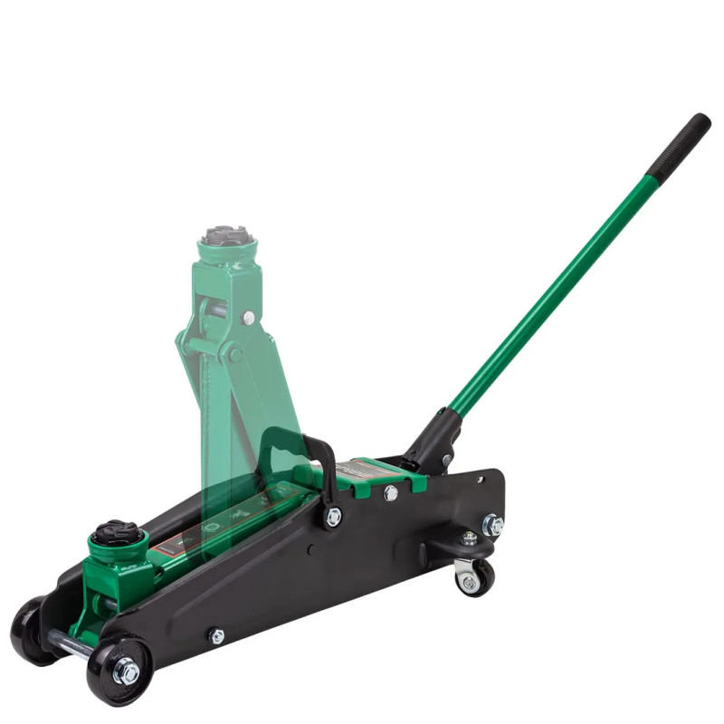Домкрат подкатной гидравлический 2,5т, максимальная нагрузка 2,5т, высота подхвата 135 мм, высота подъёма 387 мм.