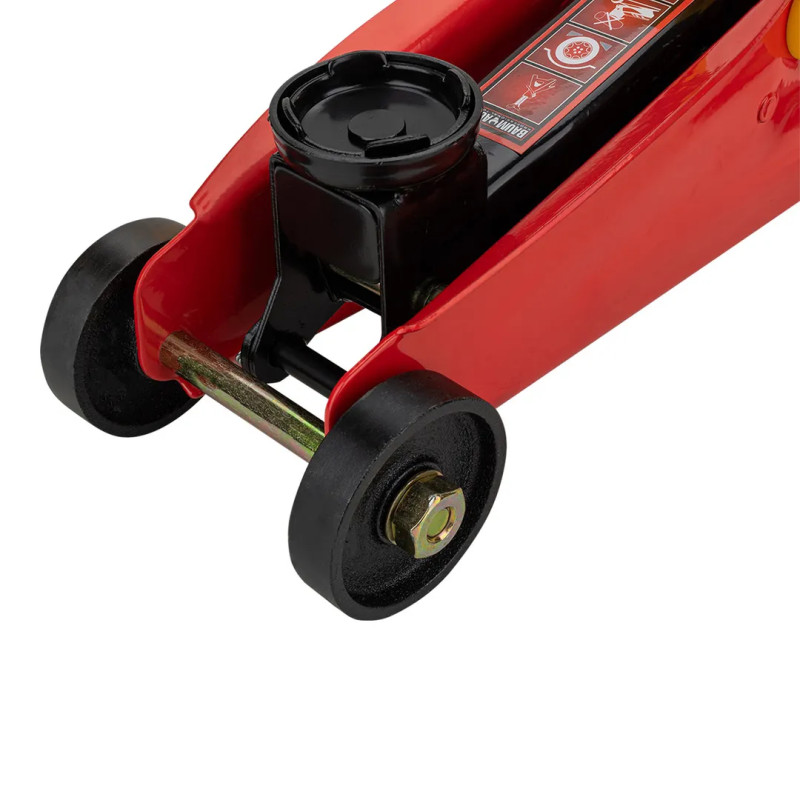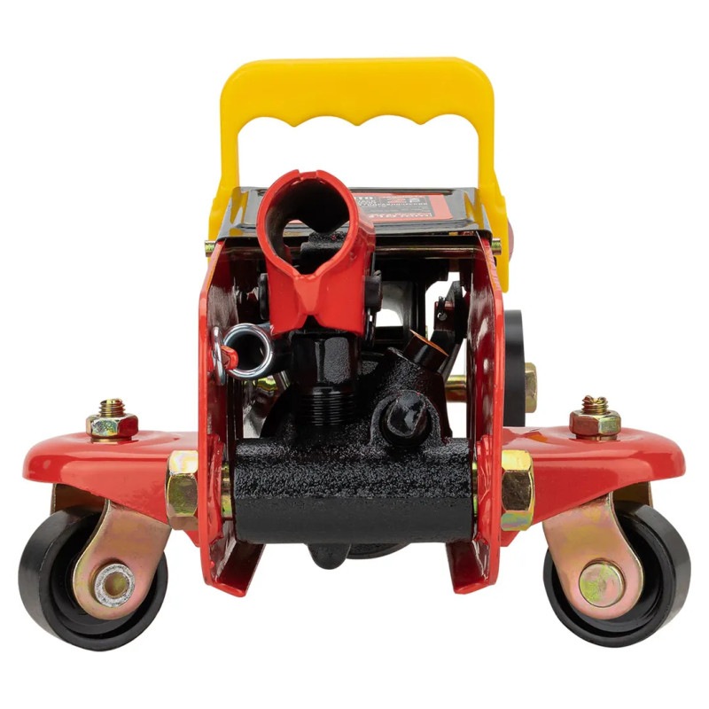 Домкрат оснащен 2 фиксированными и 2 поворотными колесами, поэтому его можно легко перемещать.