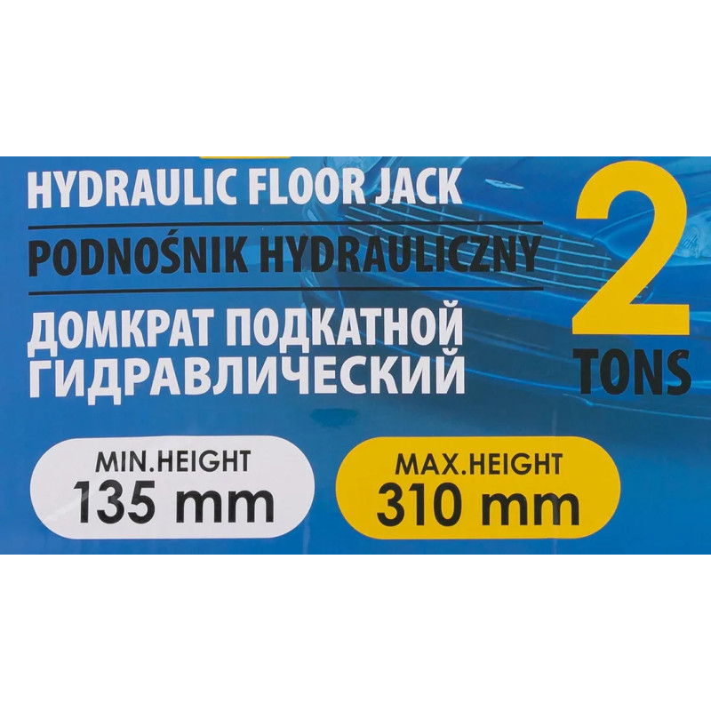 Благодаря предохранительному клапану домкрат соответствует стандарту безопасности.¶Грузоподъемность 2 тонны.¶Минимальная высота подъема 135 мм.¶Максимальная высота подъема 310 мм.