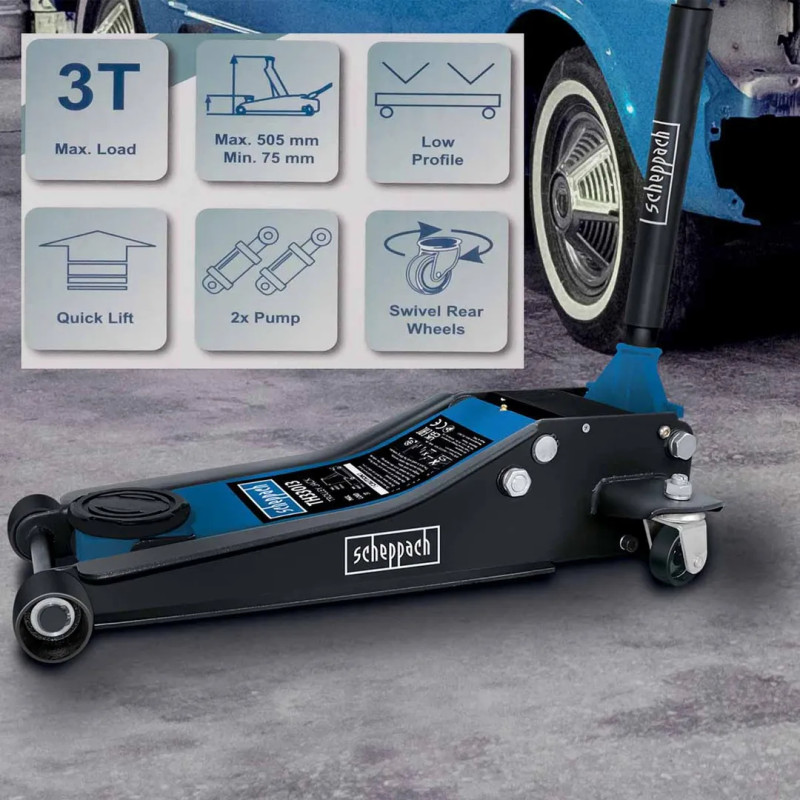 Высота подхвата 75 мм, максимальная высота подъема домкрата для машины составляет 505 мм, что обеспечивает достаточно высокое поднятие объекта для проведения ремонтных работ или замены колеса.