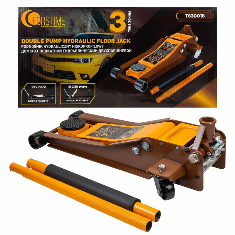 Домкрат подкатной гидравлический двухпоршневой, 3т FT-T830018