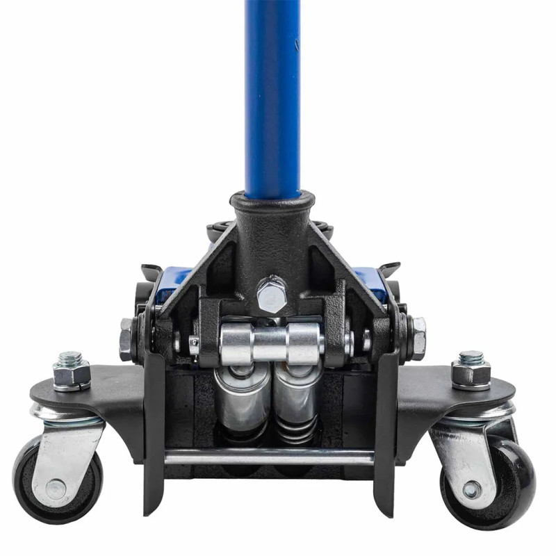 домкрат оснащен 2 фиксированными и 2 поворотными колесами, поэтому его можно легко перемещать.