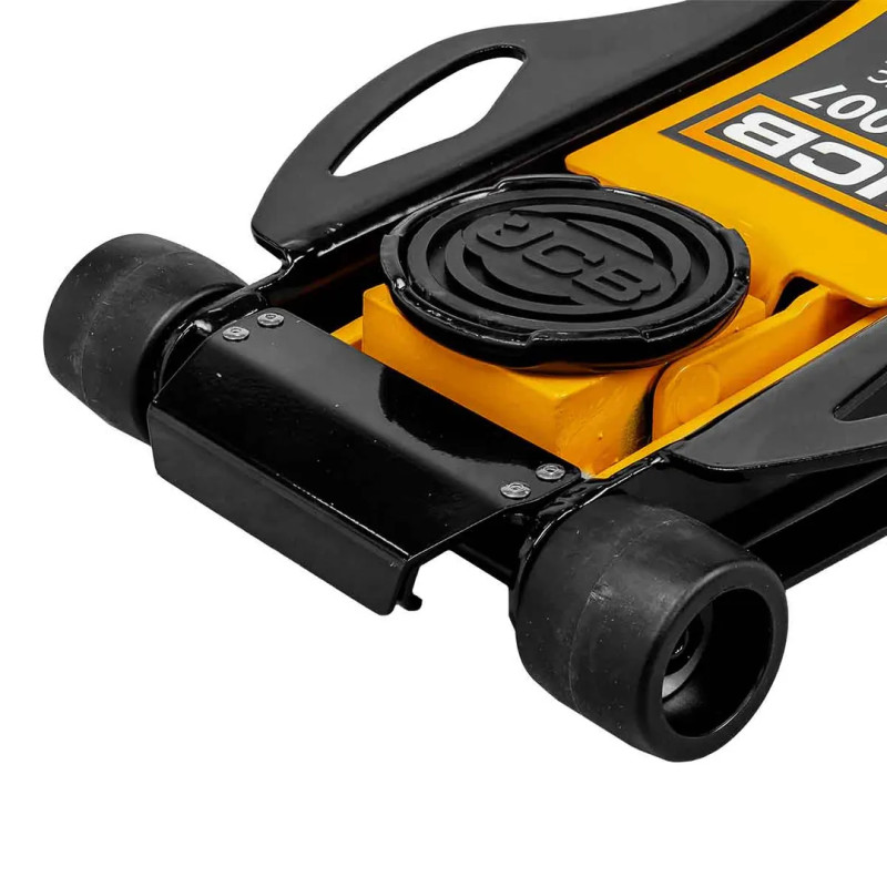 домкрат оснащен 2 фиксированными и 2 поворотными колесами, поэтому его можно легко перемещать.