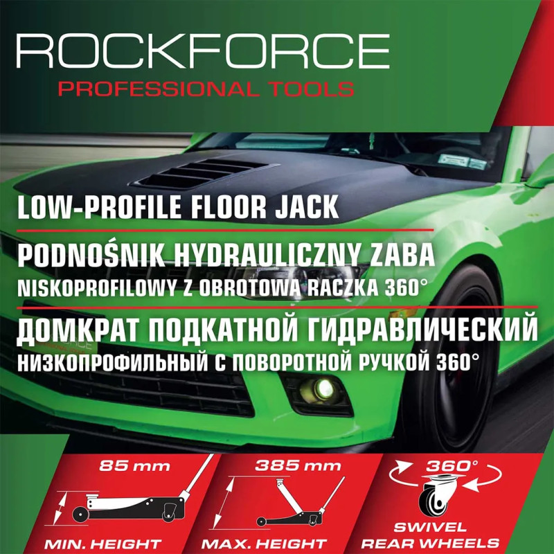 Домкрат подкатной гидравлический низкопрофильный с поворотной ручкой 3т RF-TR8204